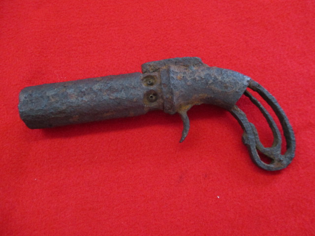 ITEM # M133 Dug Percussion Boot Pistol. 1850s pistol appearing to be ' Belgian made